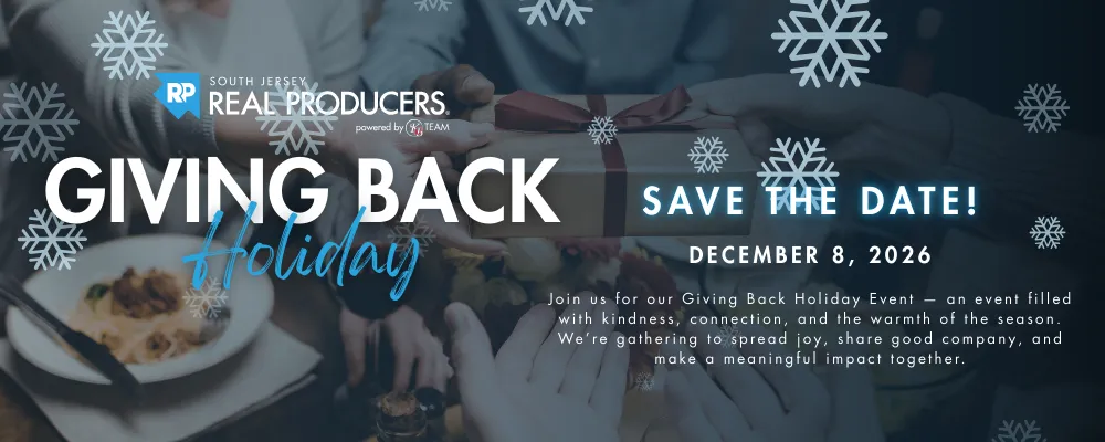 Be sure to block your calendar now so you don’t miss a moment of the upcoming South Jersey Real Producers Cheer to the Year - Giving Back